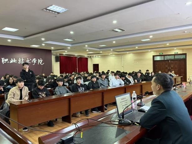 互动答疑环节,同学们聚焦征兵年龄限制、身体条件标准、入伍报名流程、优抚优待政策等核心关切,踊跃提问、深入交流,现场研讨氛围热烈浓厚。多名有志参军报国的同学,主动咨询政策细则与报名注意事项,为投身国防事业做好充分准备。答疑环节尾声,海拉尔区人民武装部为在场学子送上军事主题纪念品,以暖心举措进一步激发了我院学子建功军营的青年壮志。